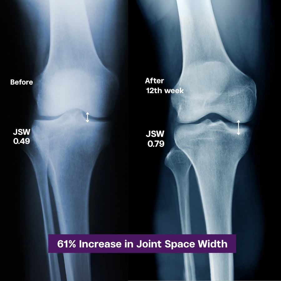 (From 0.49 to 0.79mm medial JSW – which is an indirect measure of cartilage thickness)
